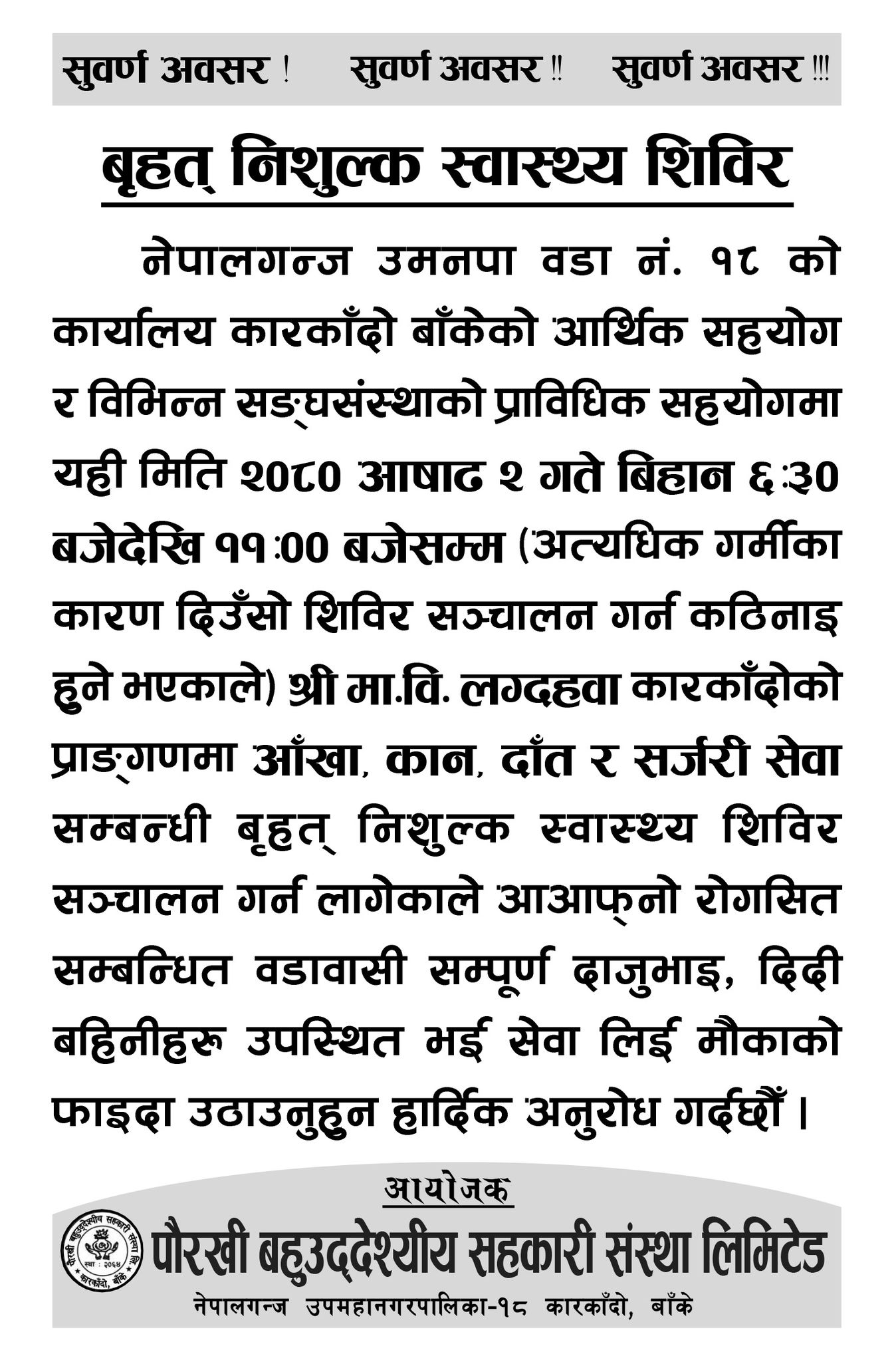 बृहत निशुल्क स्वास्थ्य शिविर सम्बन्धी सूचना ।।