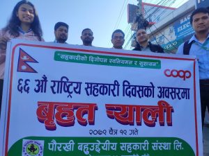 “सहकारीको दिगोपना स्वनियमन र सुशासन” भन्ने मूल नाराका साथ ६६ औँ राष्ट्रिय सहकारी दिवस